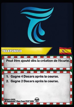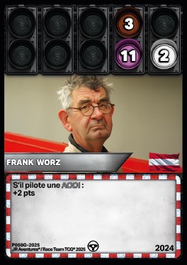 Premier TCG de gestion!! Ils se jouent de 2 à 6 avec des mécaniques jamais vues dans un autre TCG. Le but du jeu va être de créer et gérer une écurie de sport automobile sur un ensemble de 12 courses!! Le but est bien sûr de finir premier du championnat, mais attention, toute faillite budgétaire de l'écurie, et ce sera la fin de vos espoirs de victoire finale...